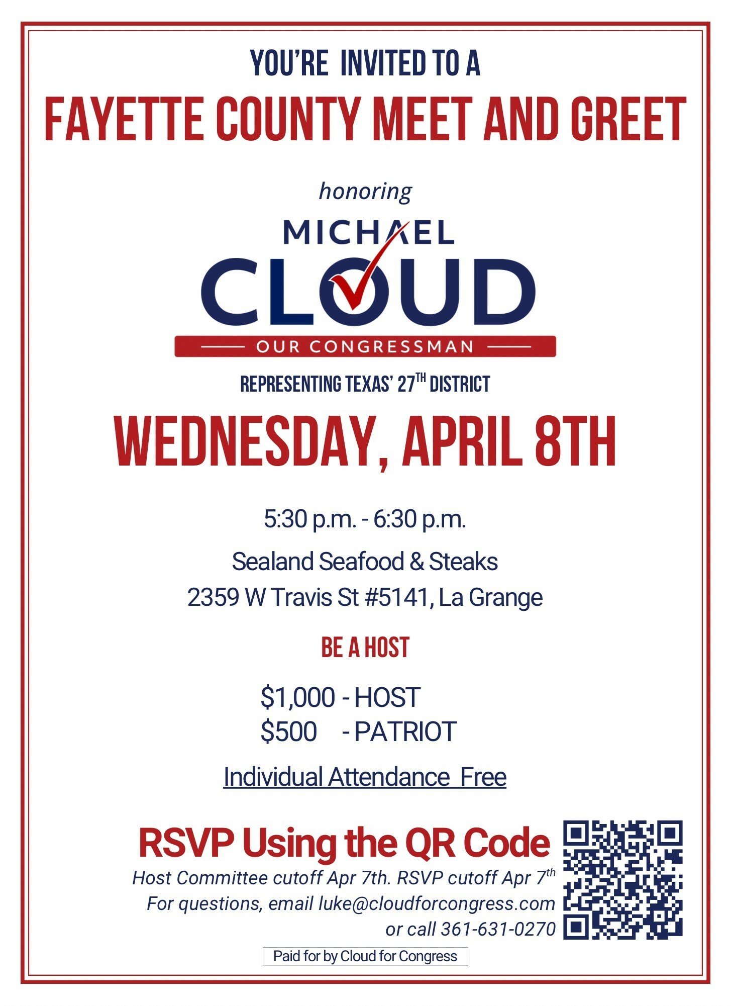 THIS EVENT IS FREE! COME MEET MICHAEL CLOUD, YOUR NEXT CONGRESSMAN! Michael is a member of the Congressional Freedom Caucus and a member of the Board of Directors for Christians Engaged. We hit the jackpot!
